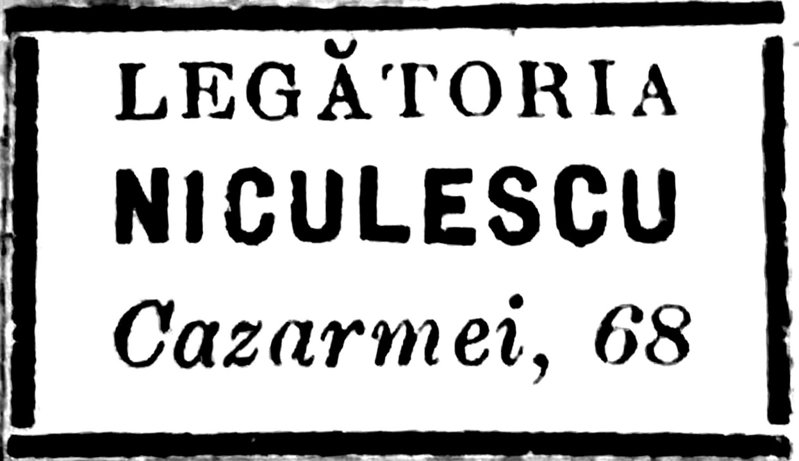 Legenda: Legătoria Niculescu. Cazarmei, 68.